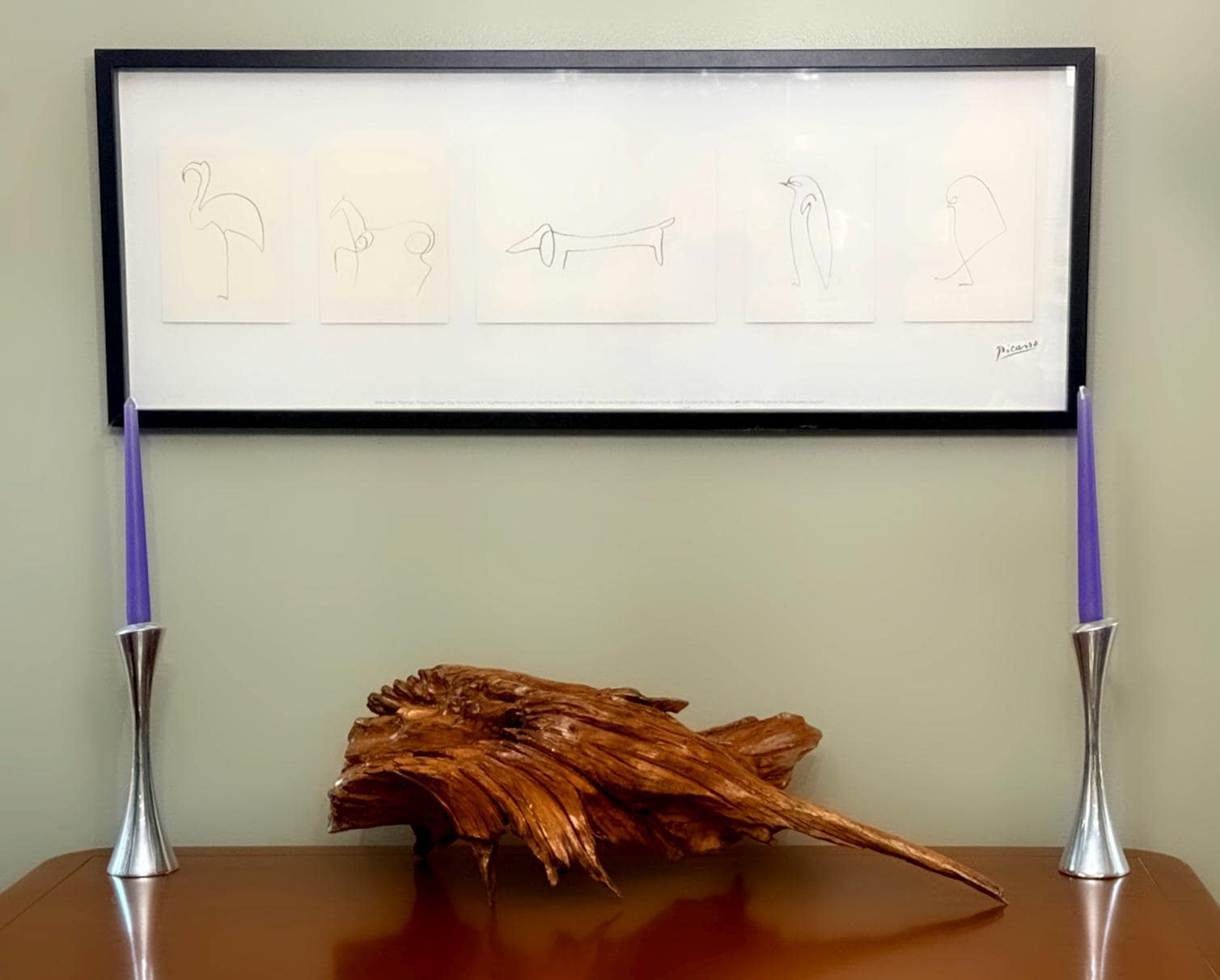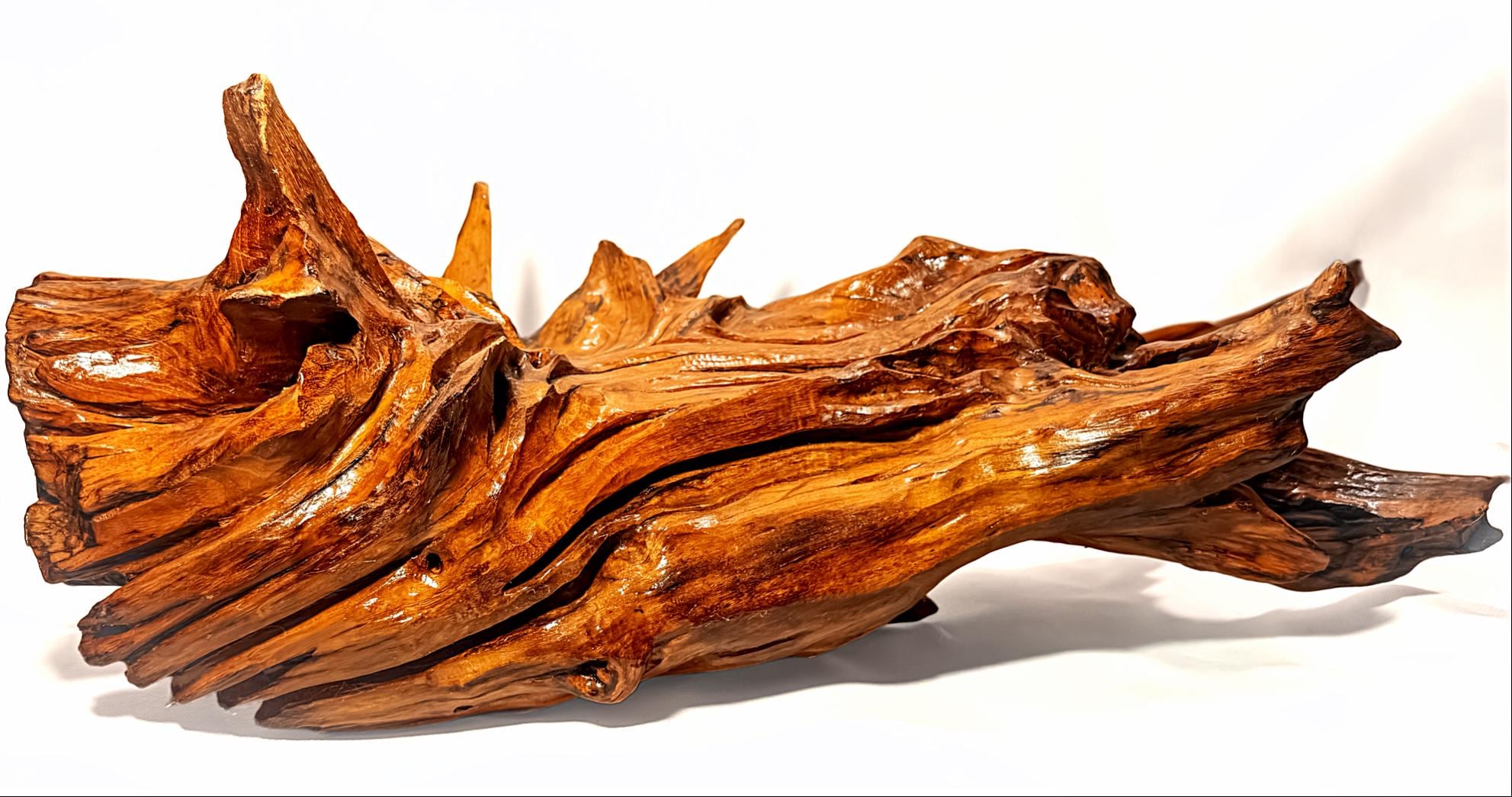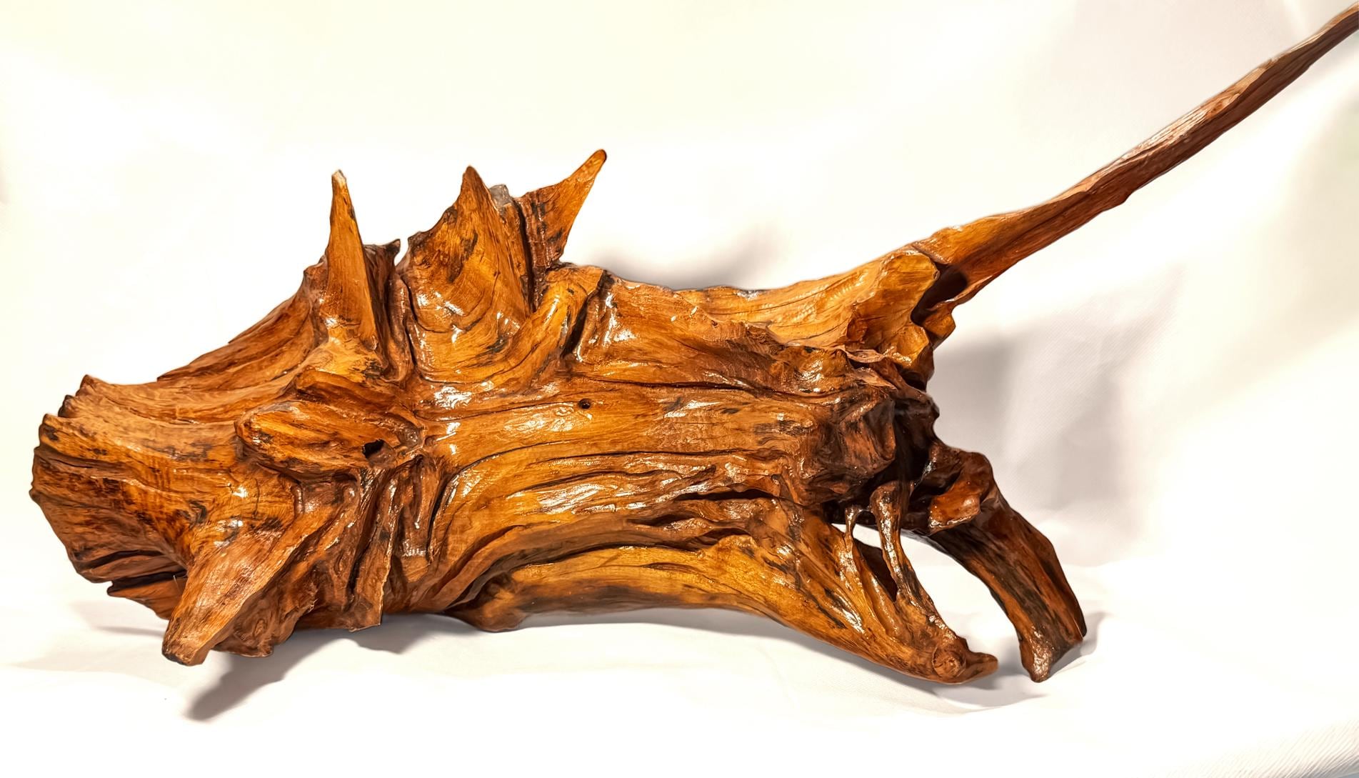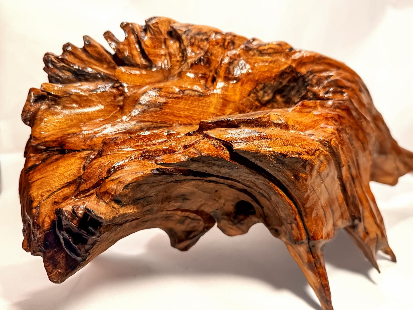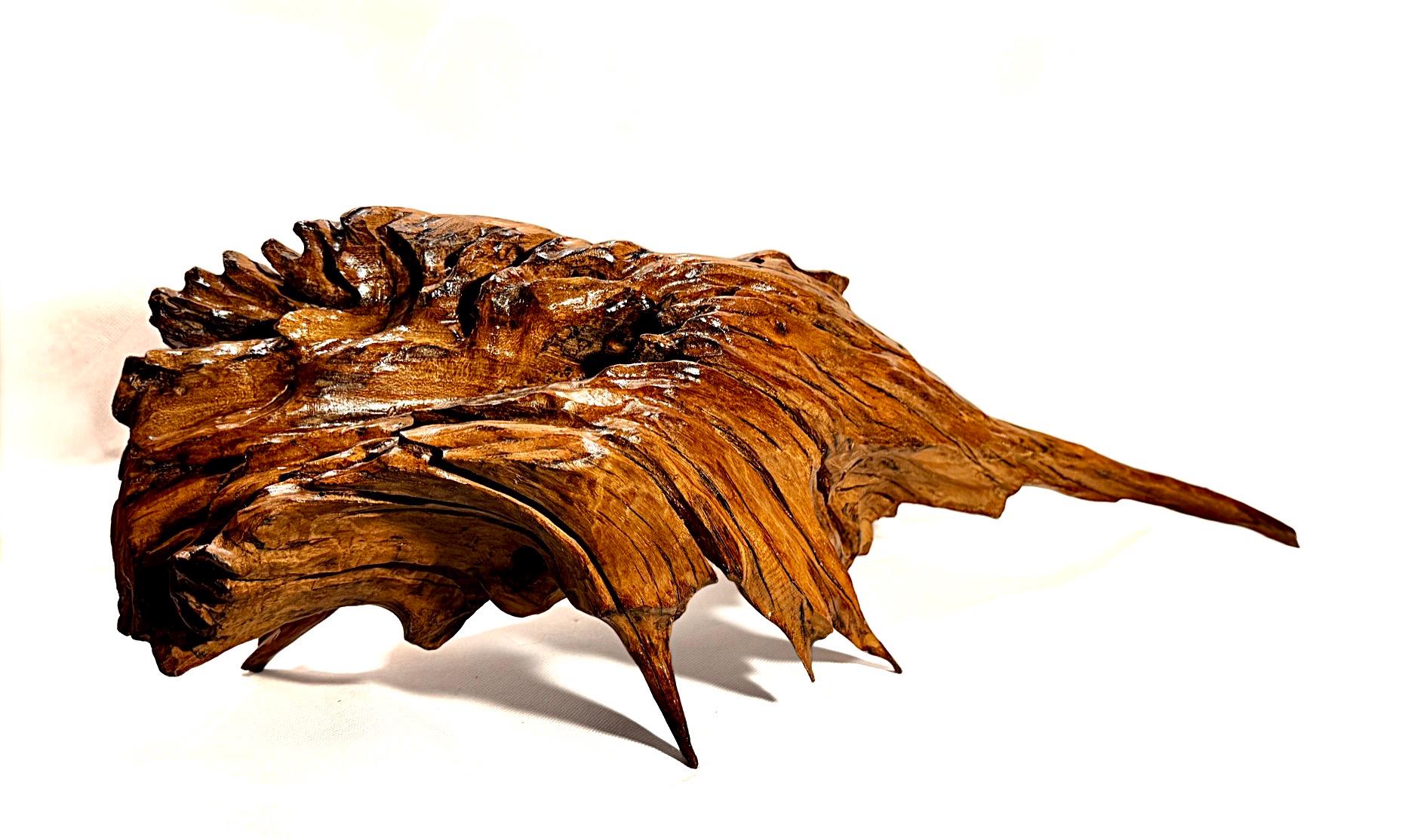 Each sculpture begins as raw wood, shaped entirely by hand using rotary tools. The process is intuitive—guided by the unique form and character of the wood. After carving and fine sanding, the piece is finished with a light stain to highlight the grain and sealed for durability and gentle sheen.