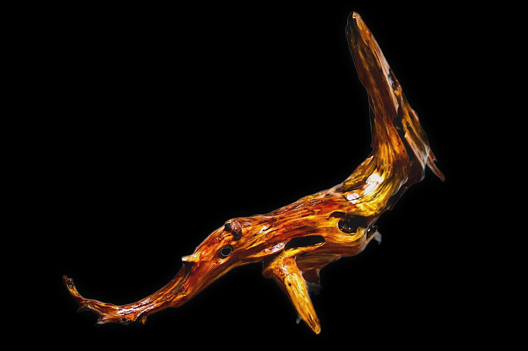 The colors in Serpent are vivid, striking, and full of life. Measuring 19.5” tall x 27” wide x 10” deep, this sculpture captures the natural beauty and movement of Eastern Red Cedar in a bold, organic form.