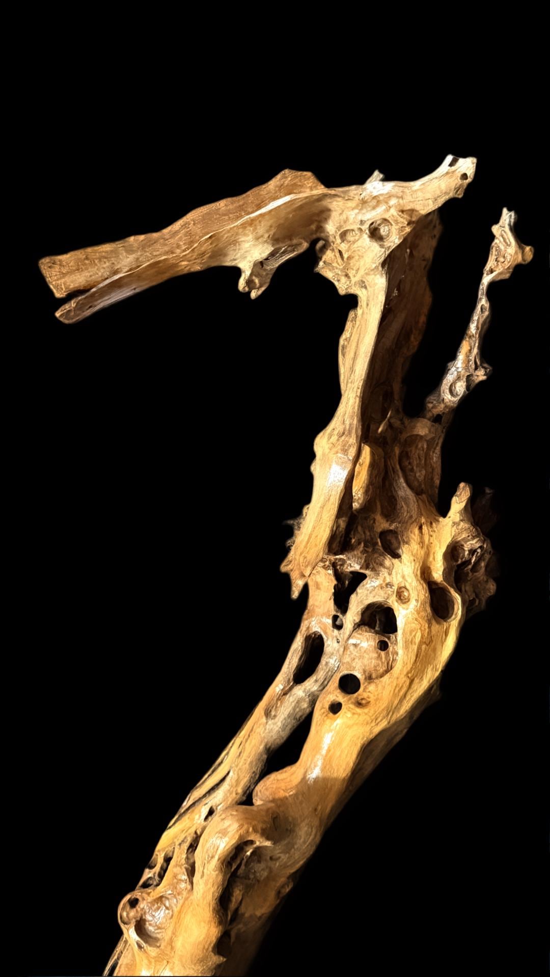 This stunning, one-of-a-kind piece is crafted from richly textured grape wood, known for its flowing grain and marbled character. It’s a versatile sculpture that brings warmth and organic beauty to any space.