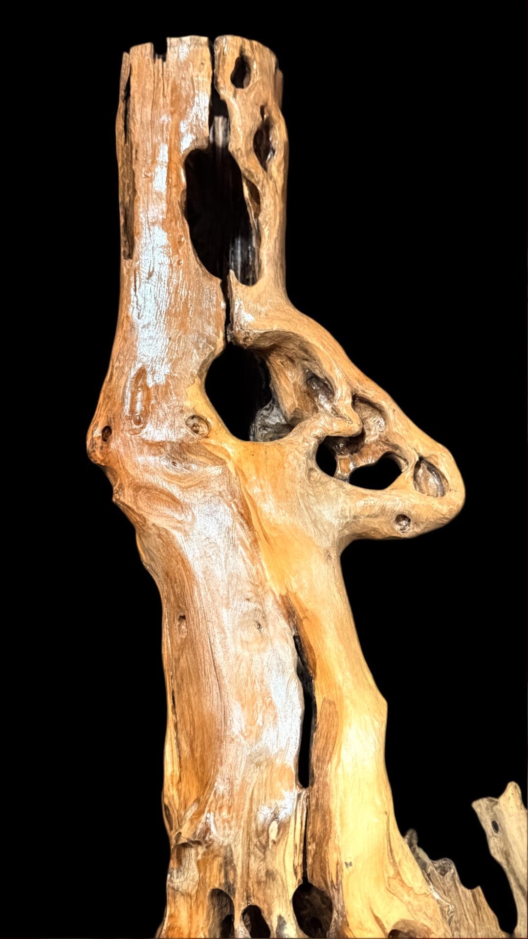 Display it on your wall, mantel, or table — or use it creatively as a vase or lamp base. For a seasonal touch, place dried flowers or greenery in the natural openings of the wood to create a unique centerpiece. It looks beautiful displayed horizontally or vertically.
