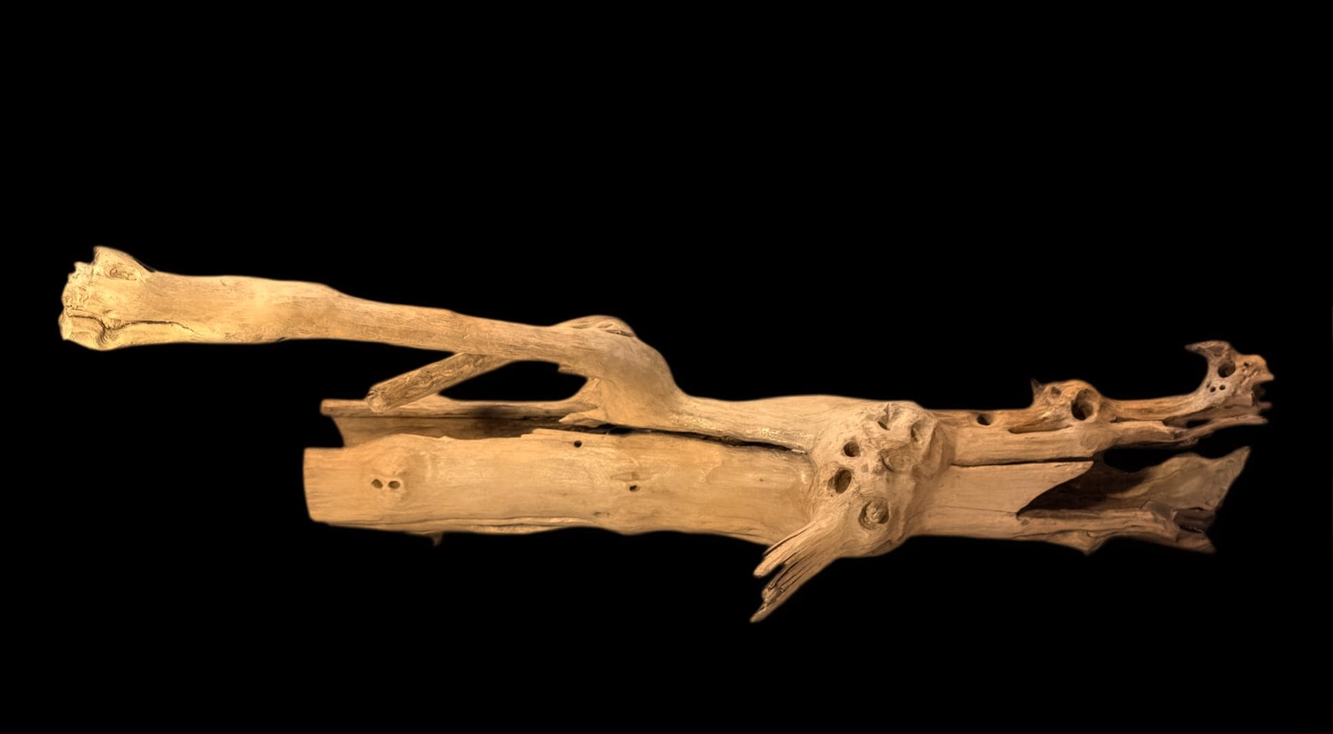 This stunning, one-of-a-kind piece is crafted from richly textured grape wood, known for its flowing grain and marbled character. It’s a versatile sculpture that brings warmth and organic beauty to any space.