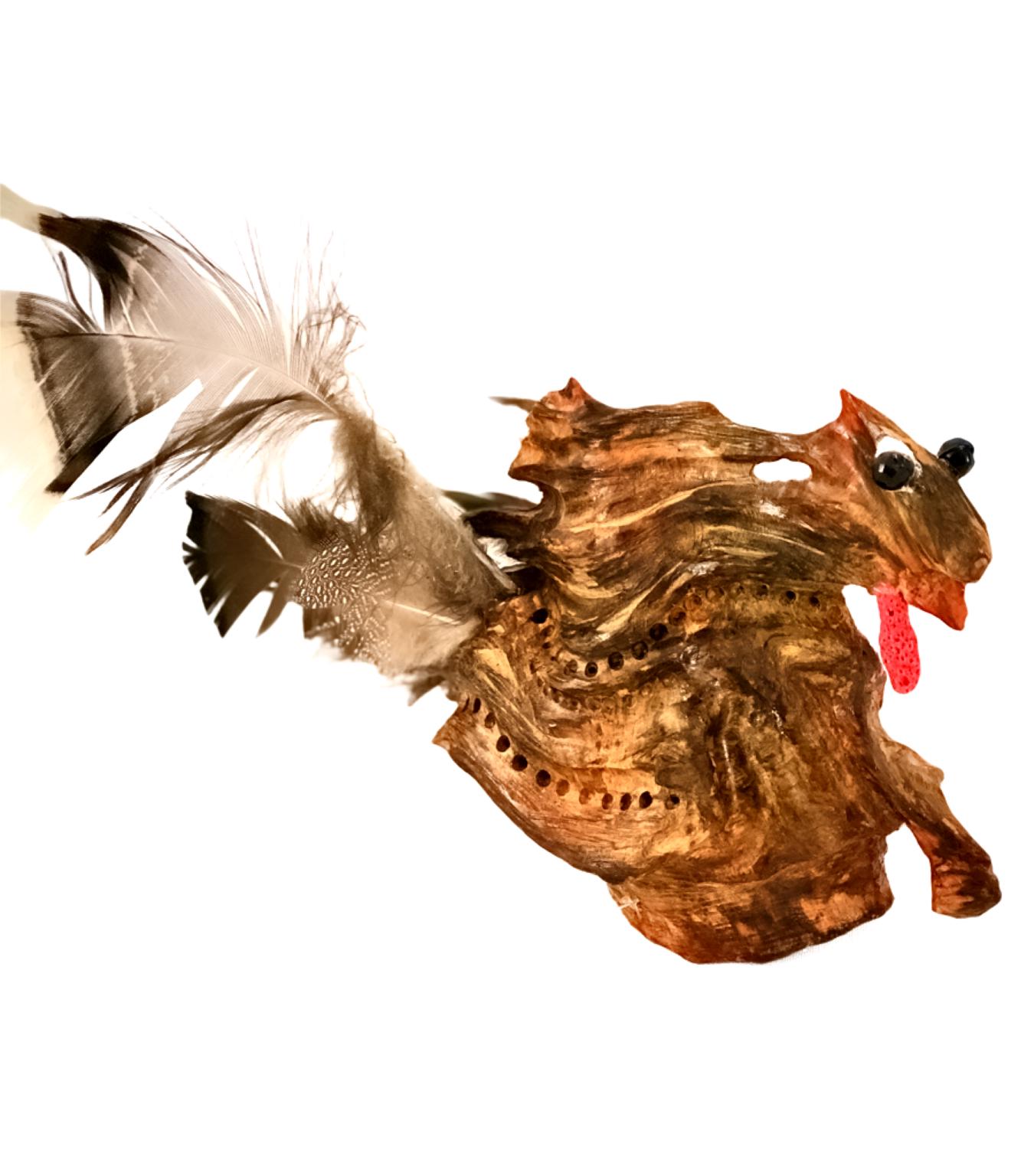 This one-of-a-kind wood sculpture captures that playful pre-Thanksgiving panic perfectly.