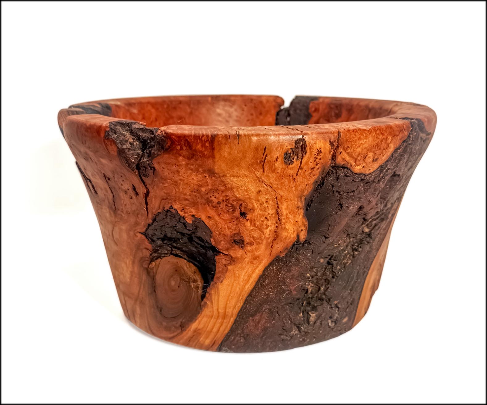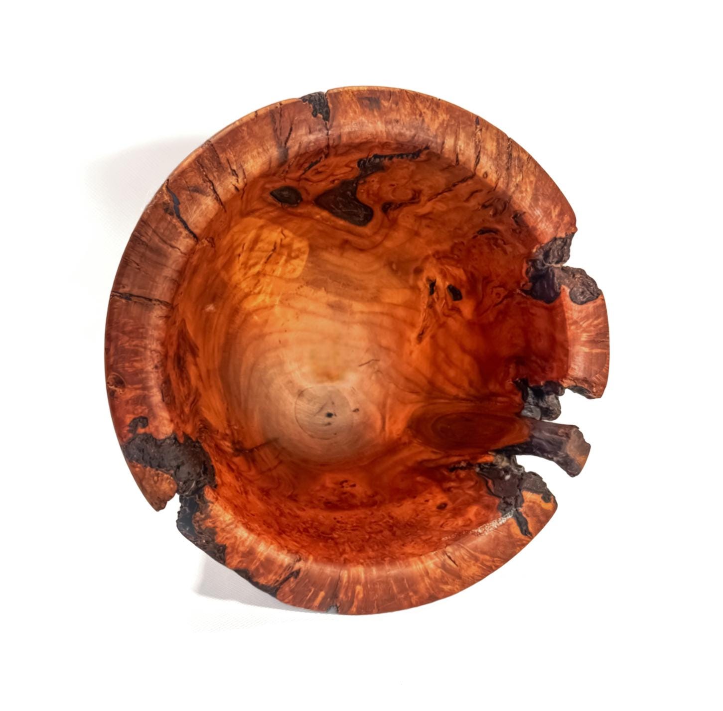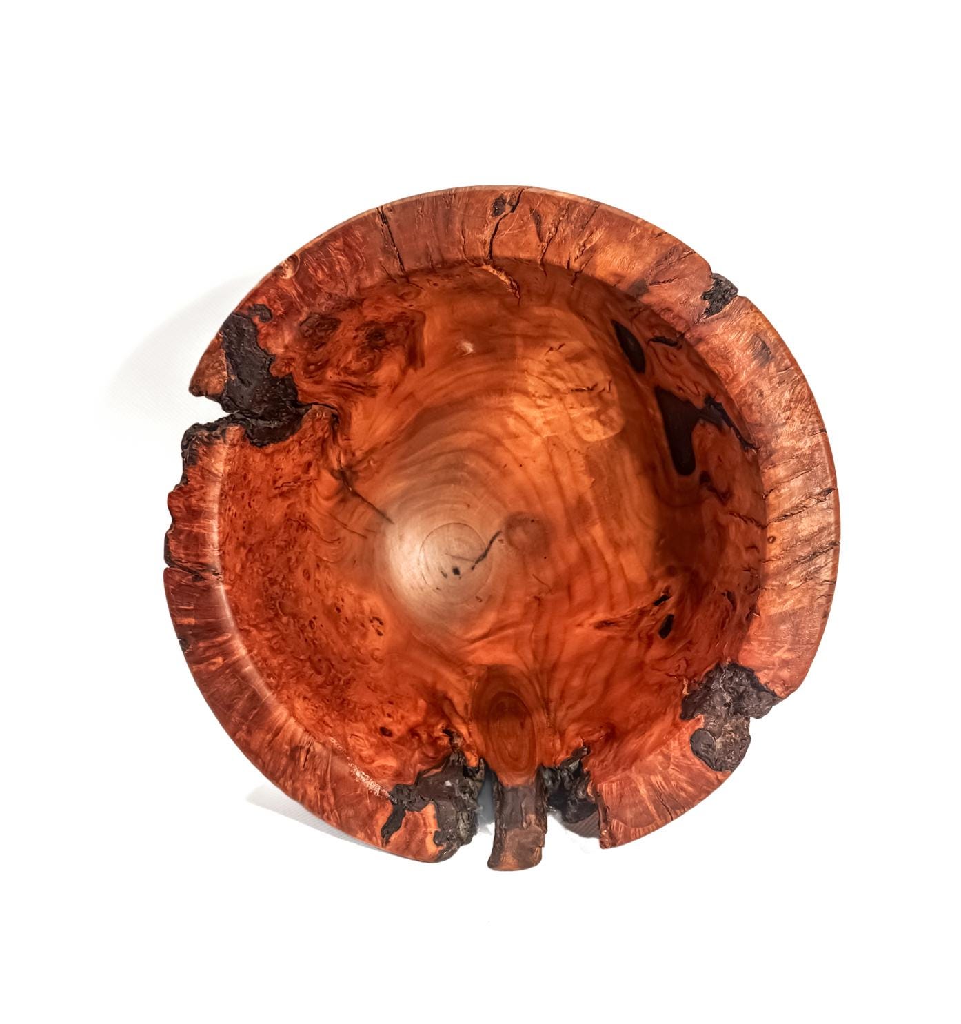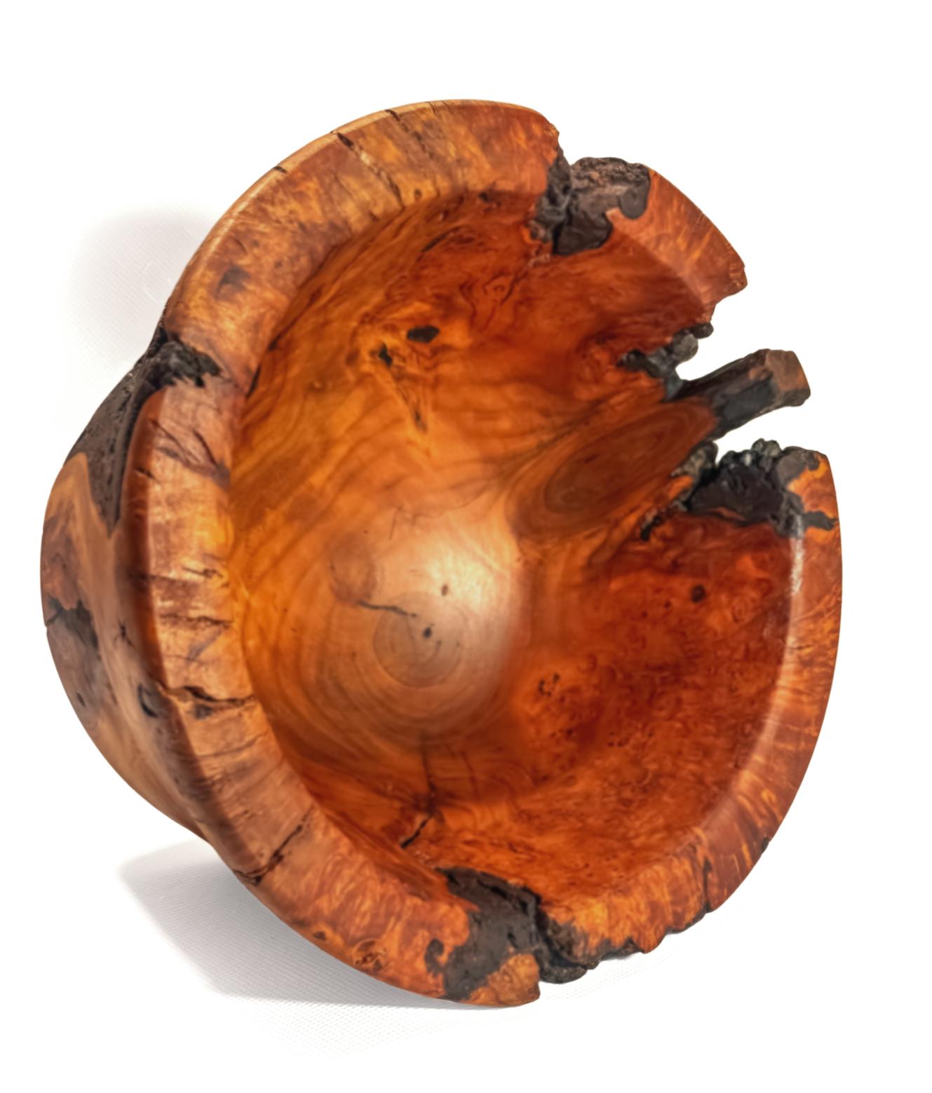 A stunning one-of-a-kind cherry burl bowl that celebrates the raw beauty of nature’s artistry.