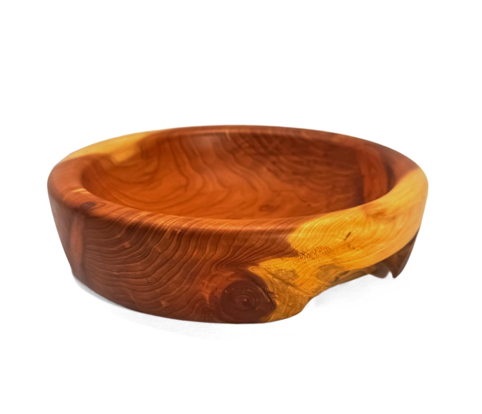 Bring the warmth and beauty of nature into your home with this stunning hand-turned red cedar bowl. Featuring gently rounded sides and a natural branch edge, this one-of-a-kind piece highlights the raw elegance of Eastern Red Cedar wood.