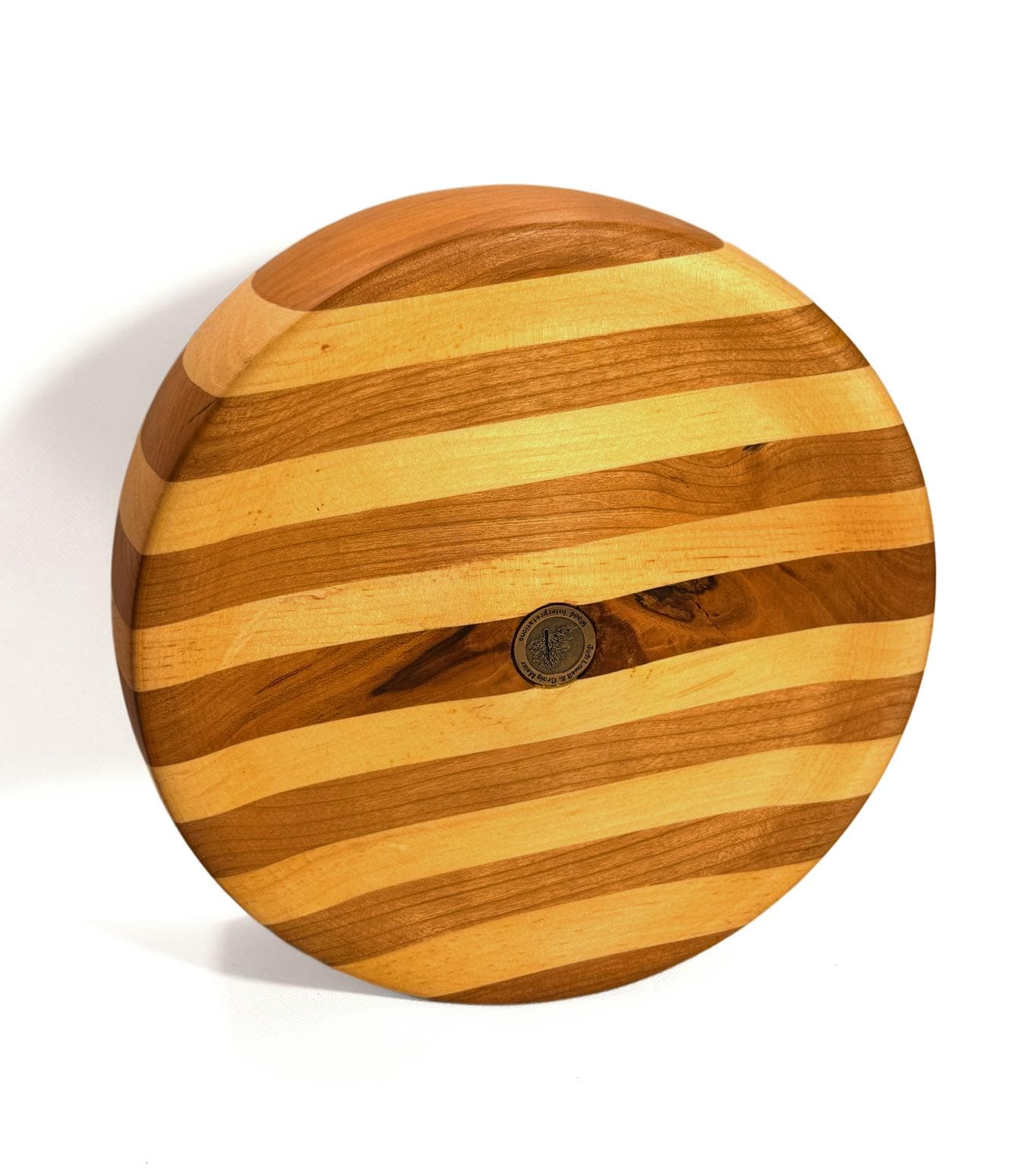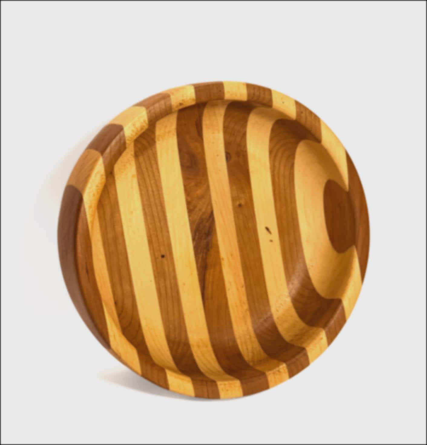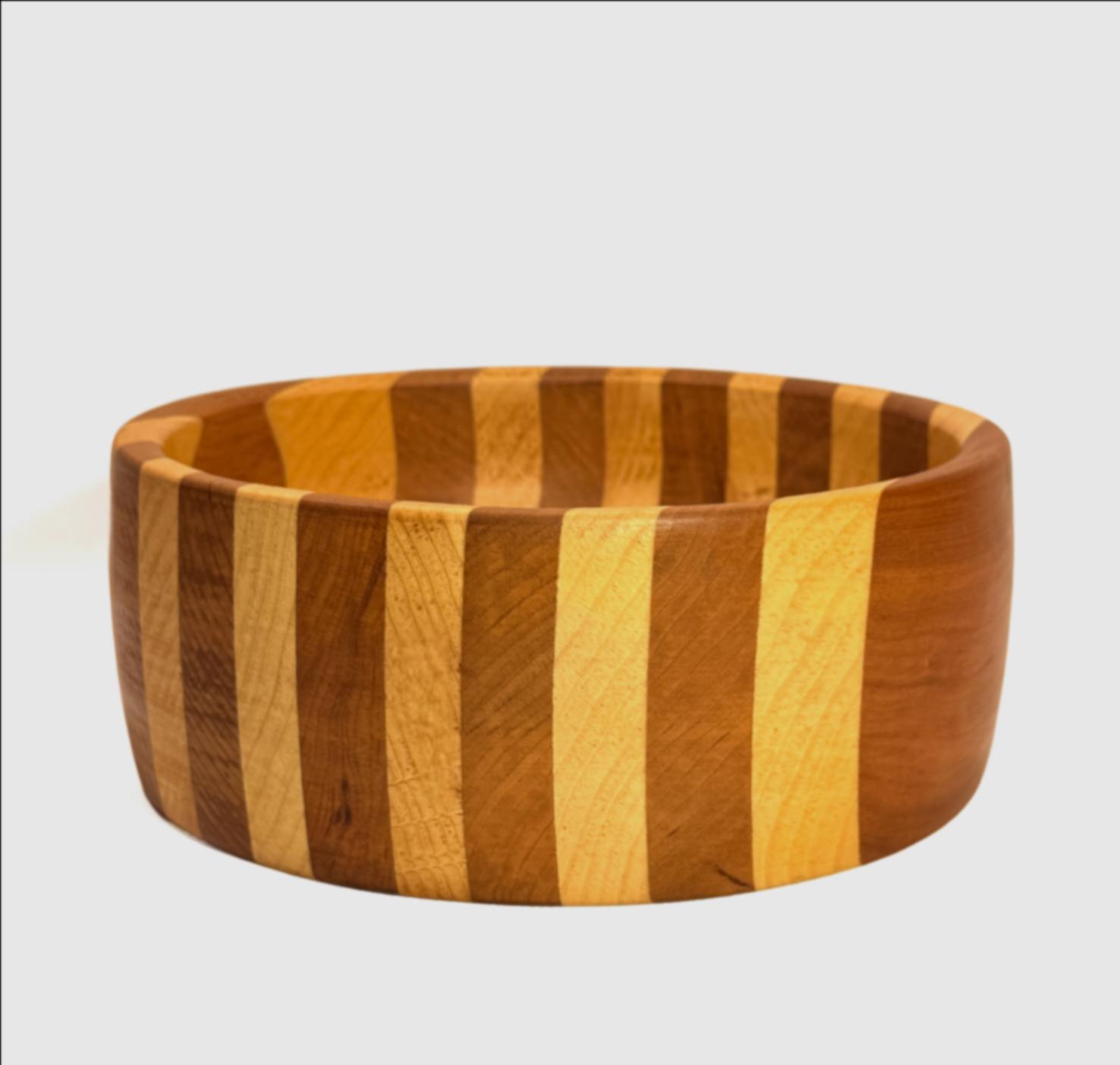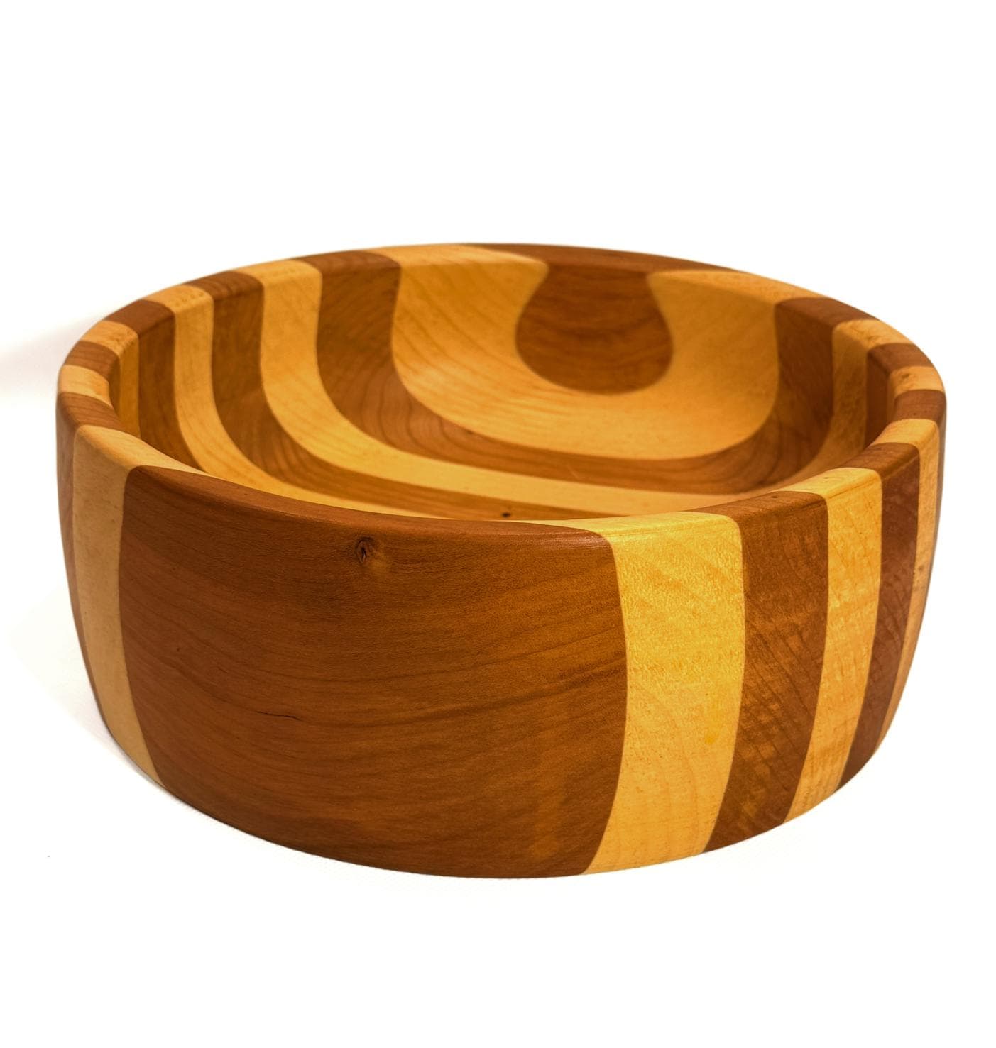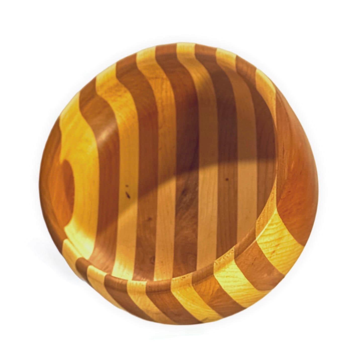 Striped Cherry & Pine Wood Bowl – Hand-Turned, Food Safe